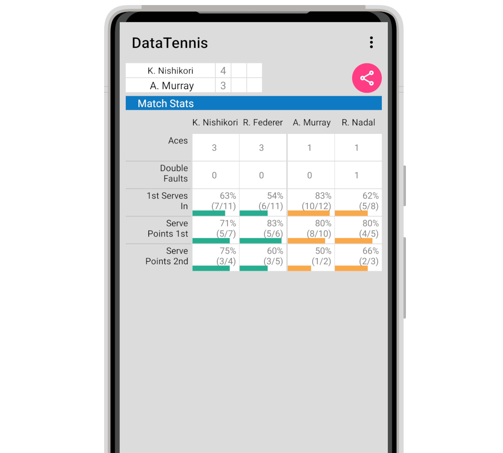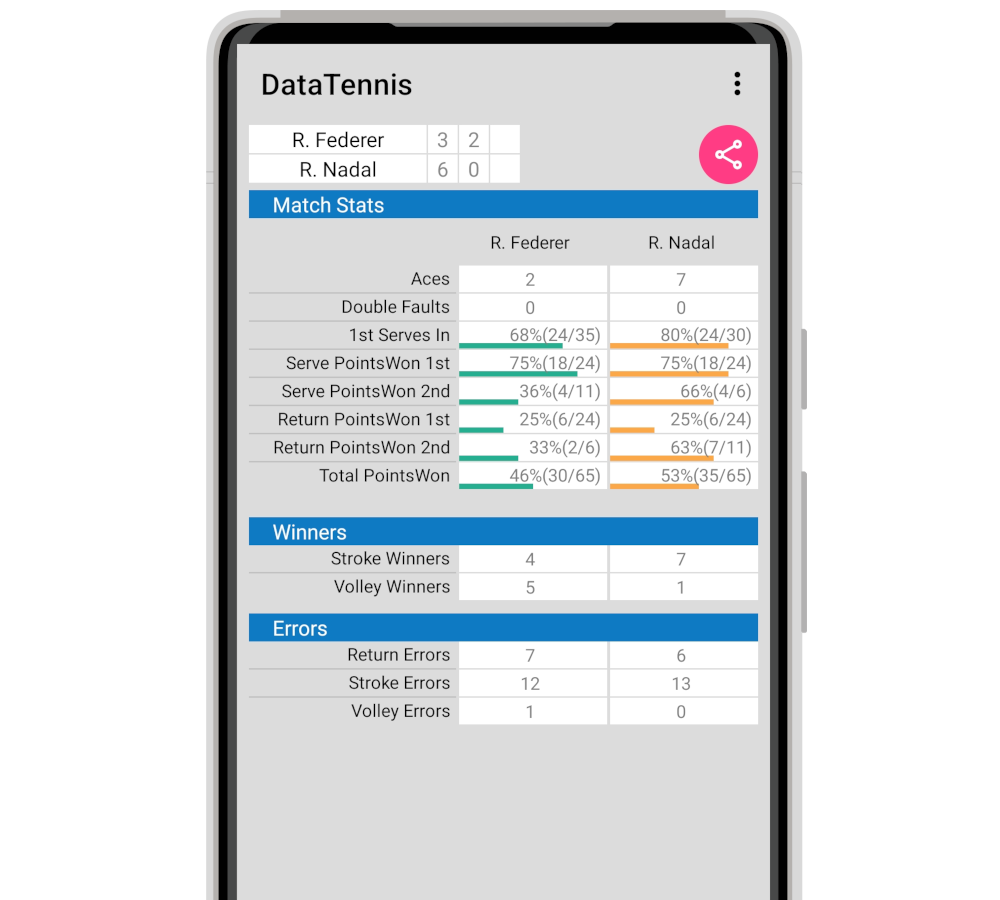 It shows point win rates and first serve percentages, which is very useful for my practice. Being able to keep professional-level scores makes matches more enjoyable.