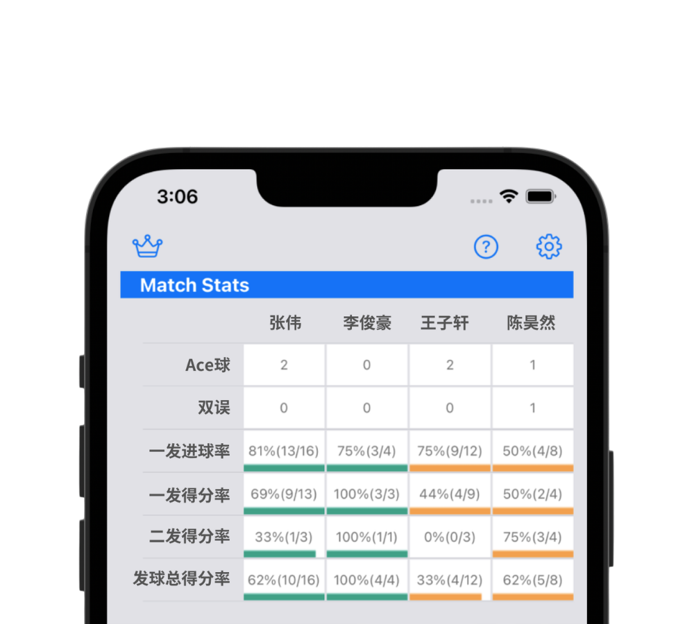 可以查看得分率、一发成功率等统计,对日常训练非常有帮助。能像职业比赛一样记录数据,让比赛变得更有趣。
