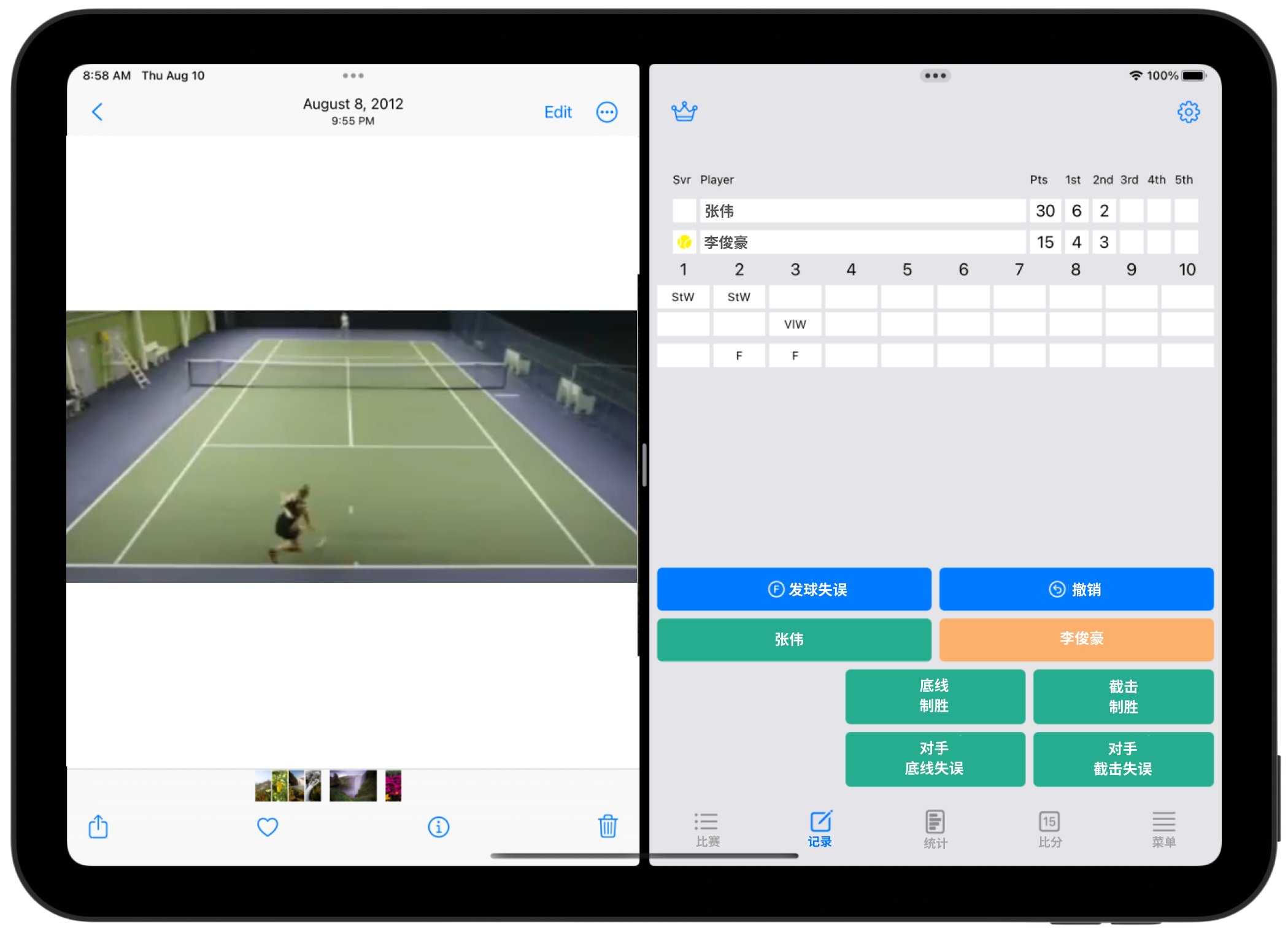 在平板上使用分屏模式 边看视频边记录比分更方便!